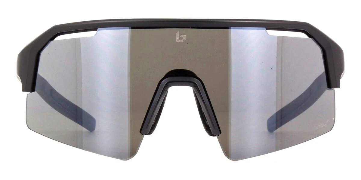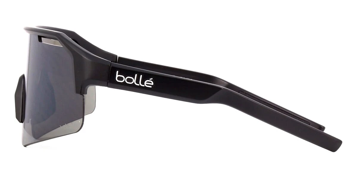 This shield Bolle sunglass comes in a matte black frame with volt gun lenses.