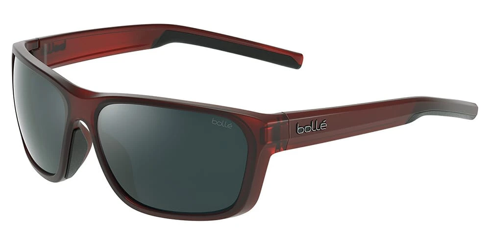 This square Bolle sunglass comes in a mocha brown transparent matte frame with tns grey solid tint cat 3 to 3 lenses.