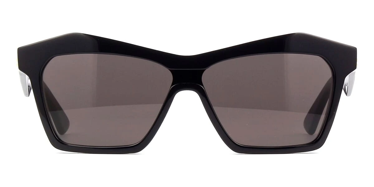 This cat eye Bottega Veneta sunglass comes in a black frame with grey lenses.