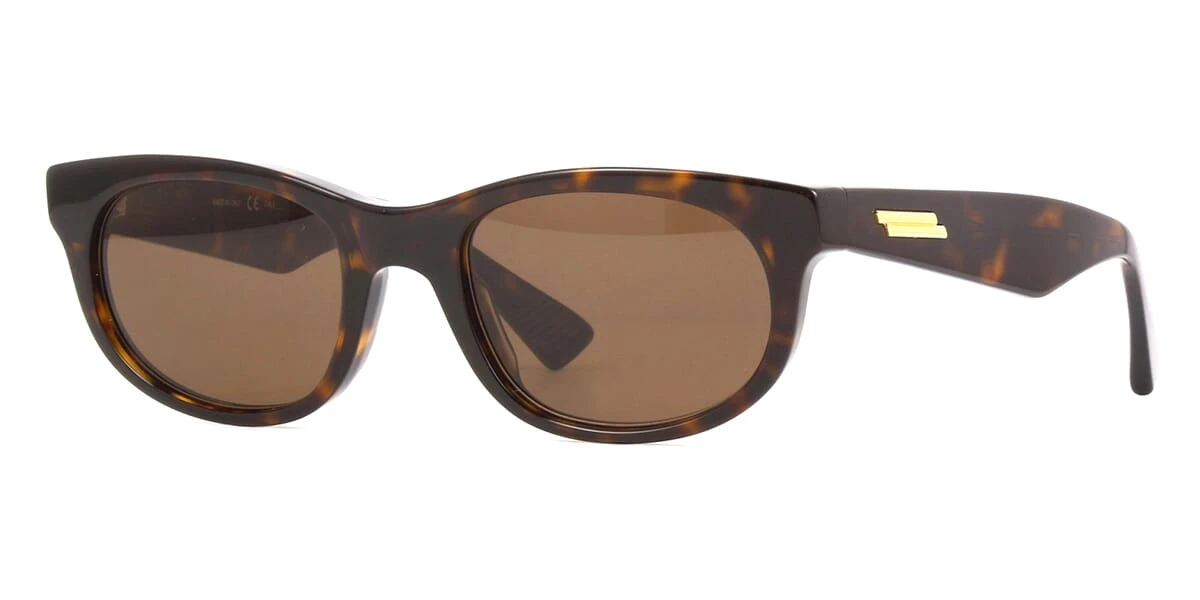 This cat eye Bottega Veneta sunglass comes in a shiny dark havana frame with brown lenses.