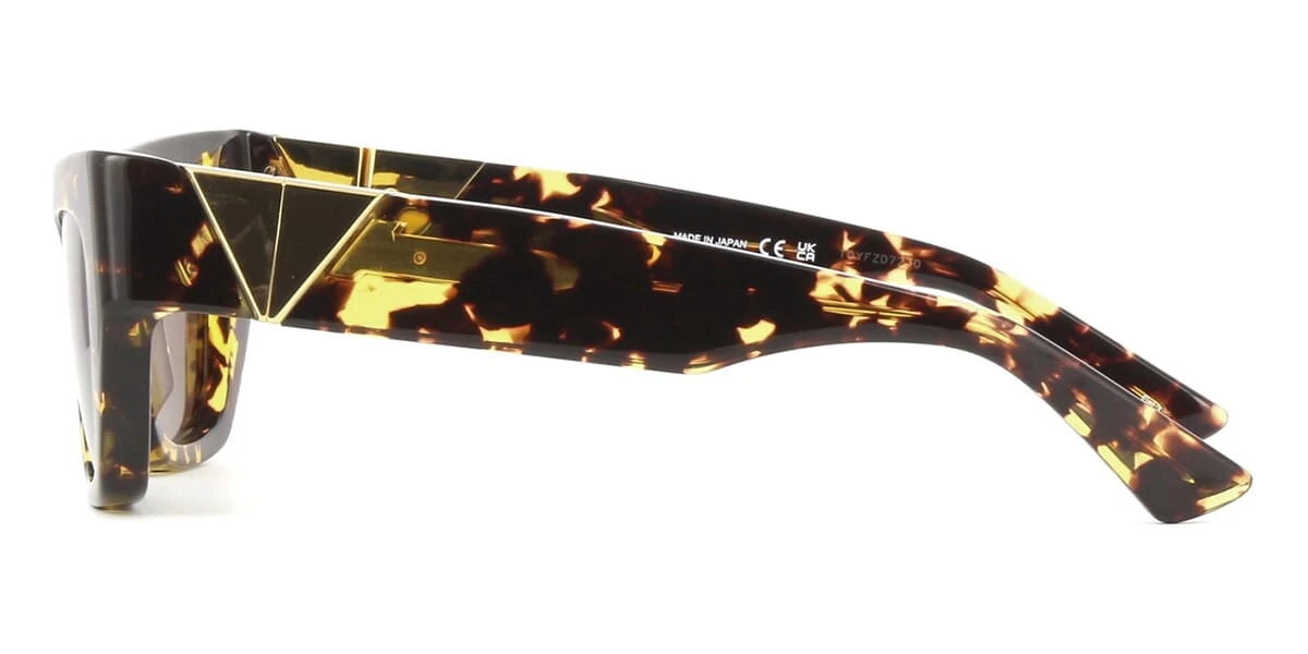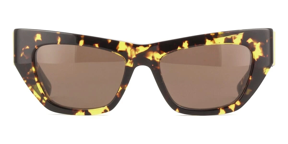 This cat eye Bottega Veneta sunglass comes in a dark havana frame with brown lenses.