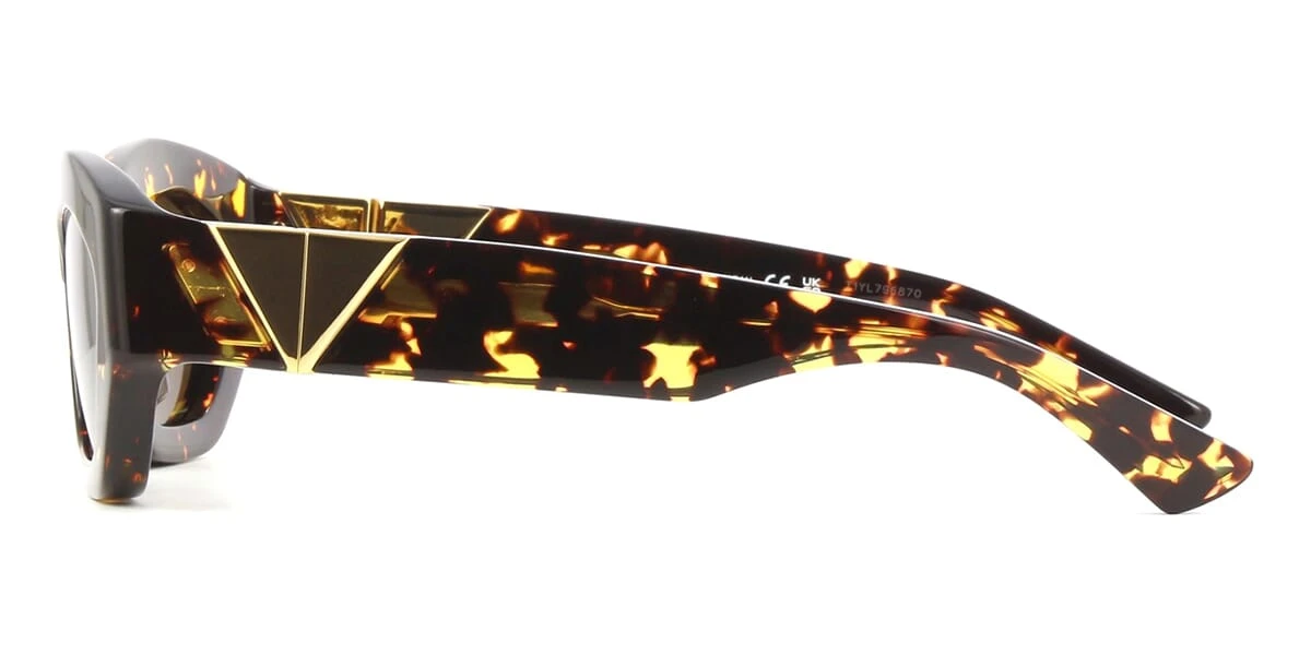 This cat eye Bottega Veneta sunglass comes in a shiny spotted dark havana frame with brown lenses.