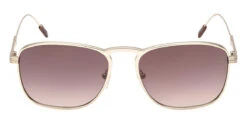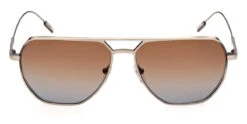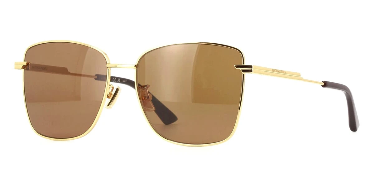 This square Bottega Veneta sunglass comes in a shiny gold frame with brown lenses.