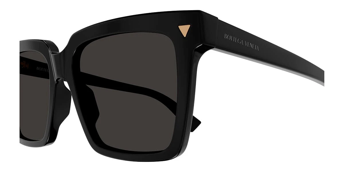 This square Bottega Veneta sunglass comes in a black frame with grey lenses.
