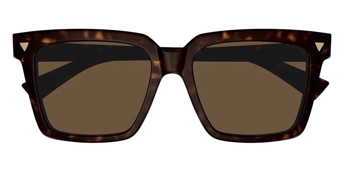 This square Bottega Veneta sunglass comes in a havana frame with brown lenses.