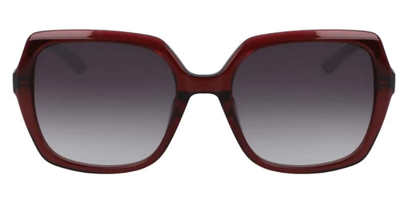 This butterfly Calvin Klein sunglass comes in a crystal burgundy frame with grey gradient lenses.