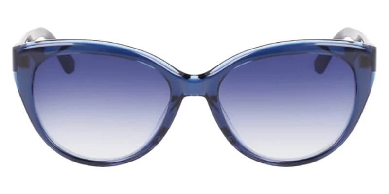This cat eye Calvin Klein sunglass comes in a blue frame with blue gradient lenses.