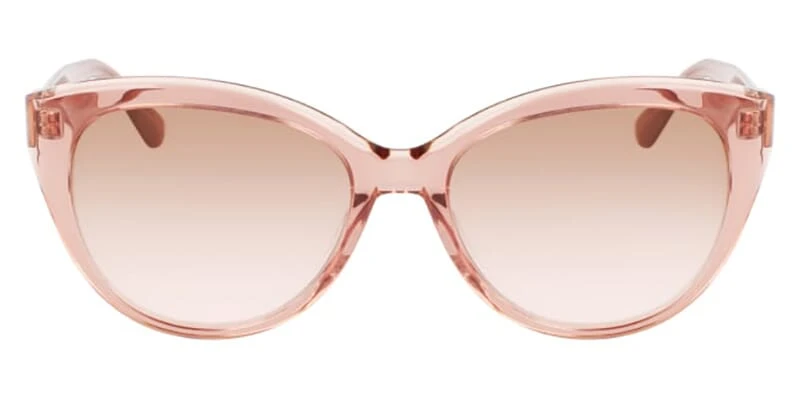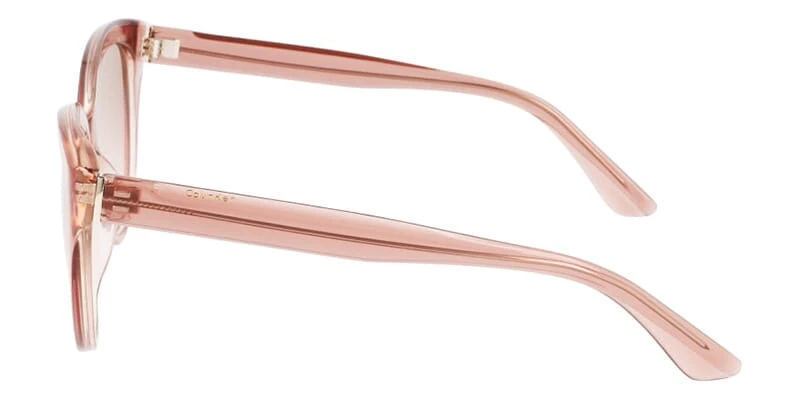 This cat eye Calvin Klein sunglass comes in a rose frame with brown gradient lenses.
