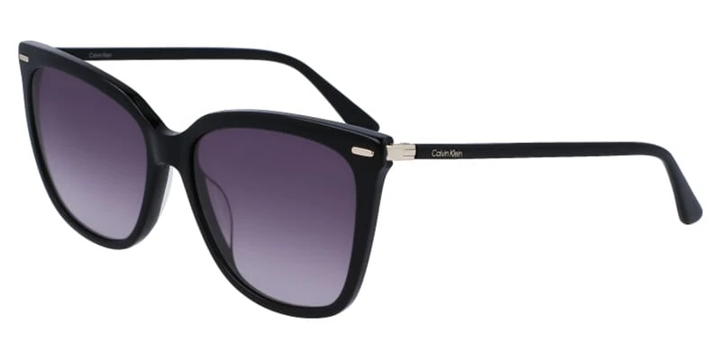 This cat eye Calvin Klein sunglass comes in a black frame with purple gradient lenses.