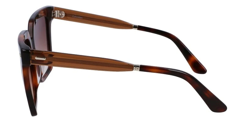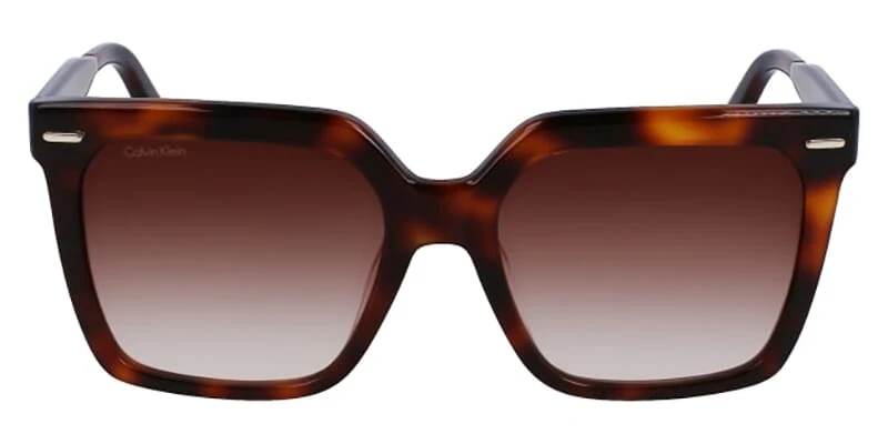This square Calvin Klein sunglass comes in a brown havana frame with brown gradient lenses.