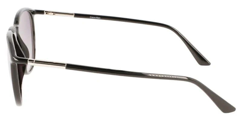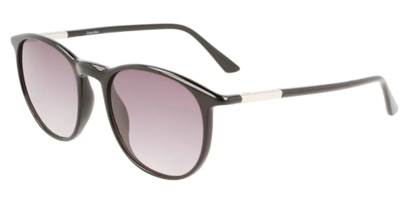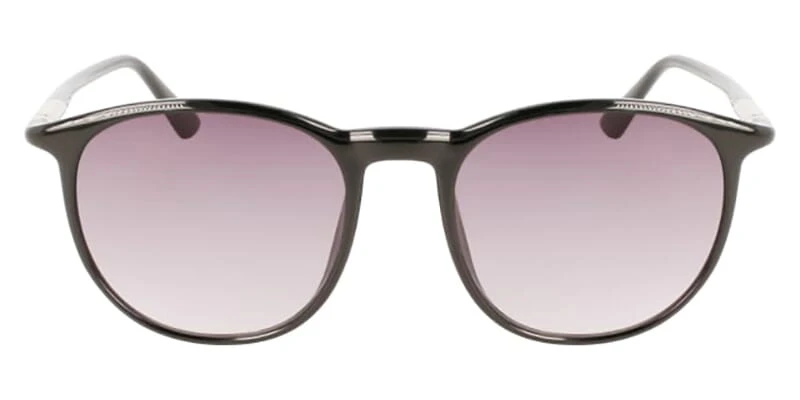 This round Calvin Klein sunglass comes in a black frame with purple gradient lenses.