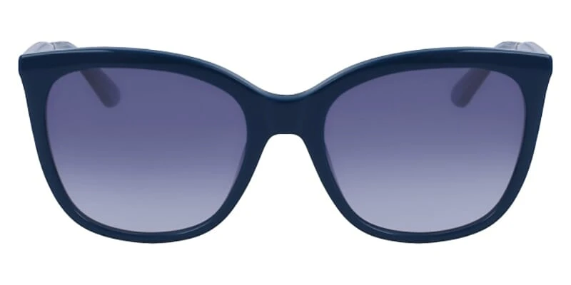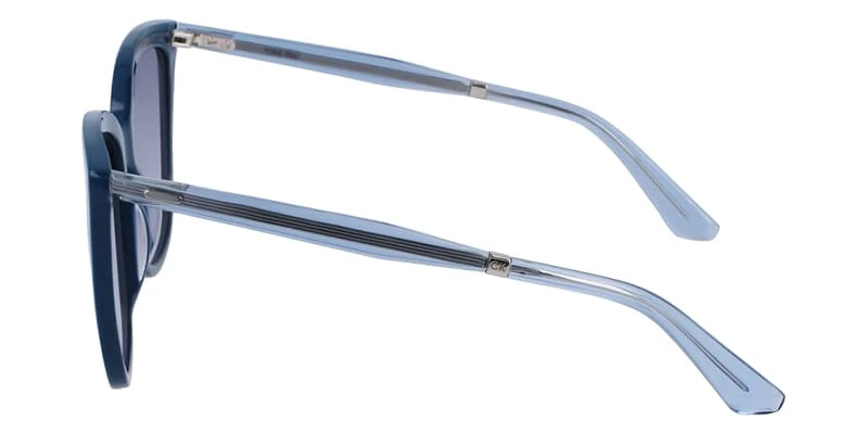 This cat eye Calvin Klein sunglass comes in a blue frame with blue gradient lenses.