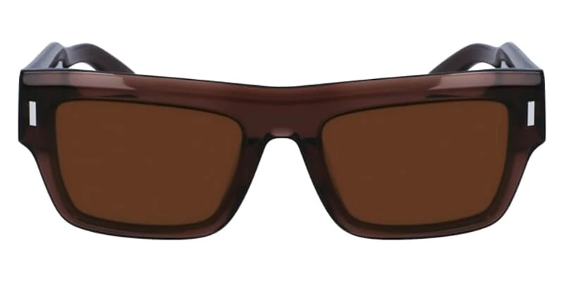 This square Calvin Klein sunglass comes in a taupe frame with brown lenses.