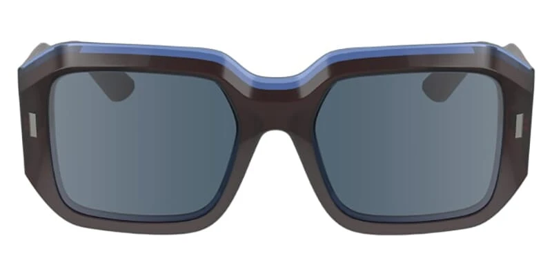 This butterfly Calvin Klein sunglass comes in a brown frame with blue lenses.