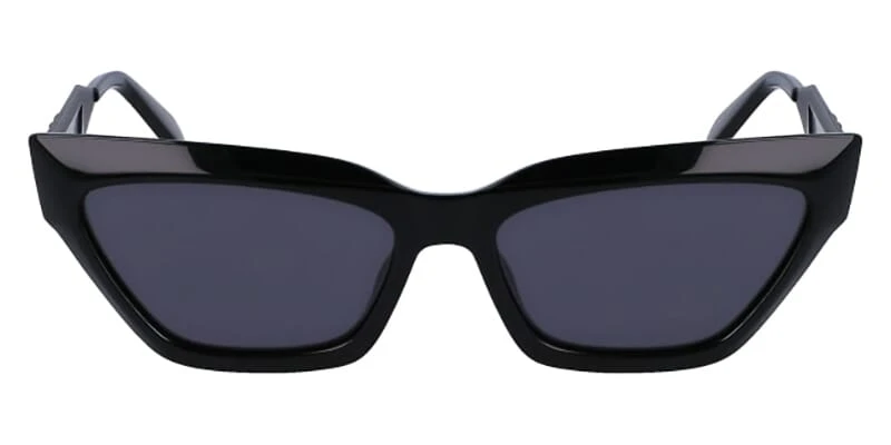 This cat eye Calvin Klein sunglass comes in a black frame with grey lenses.