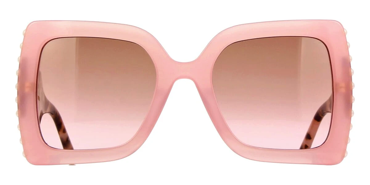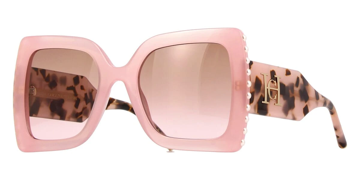This square Carolina Herrera sunglass comes in a ling pink opal with brown havana frame with light brown gradient lenses.