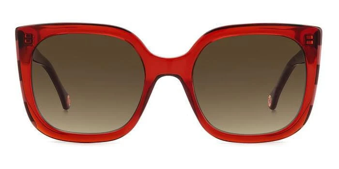 This square Carolina Herrera sunglass comes in a burgundy red frame with brown gradient cat 2 lenses.