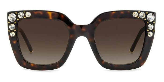 This square Carolina Herrera sunglass comes in a havana with crystal frame with brown gradient cat 3 lenses.
