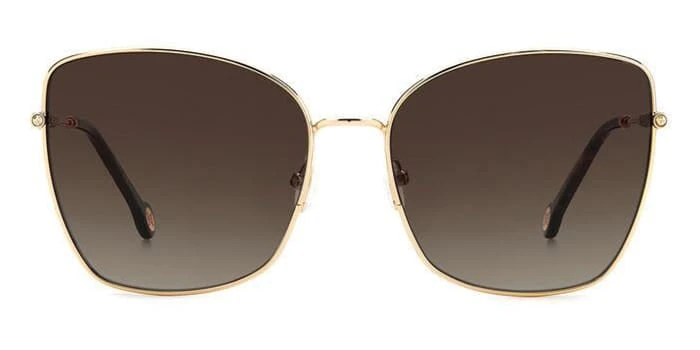 This square Carolina Herrera sunglass comes in a rose gold with havana frame with brown gradient cat 3 lenses.