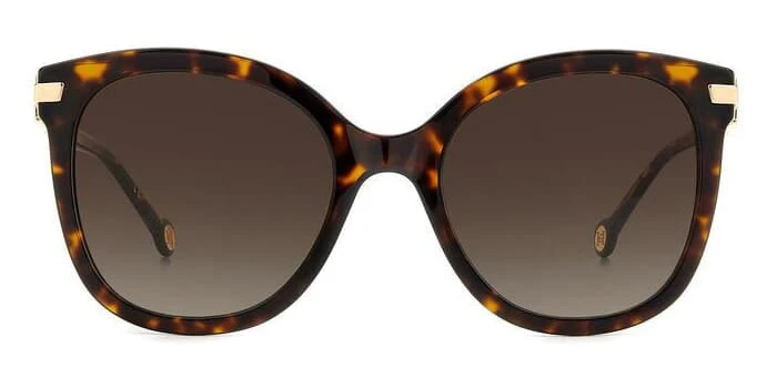 This square Carolina Herrera sunglass comes in a havana gold with silver frame with brown gradient cat 3 lenses.