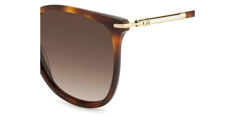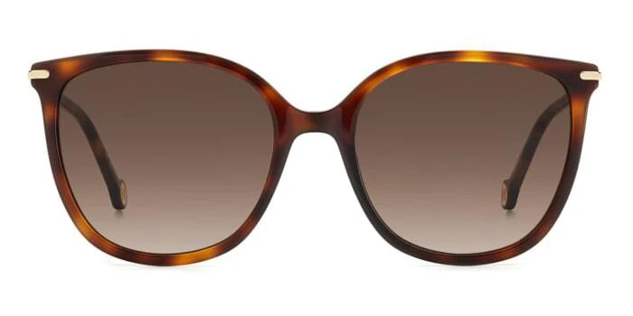 This square Carolina Herrera sunglass comes in a brown havana with gold frame with brown gradient lenses.