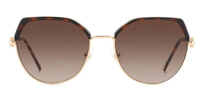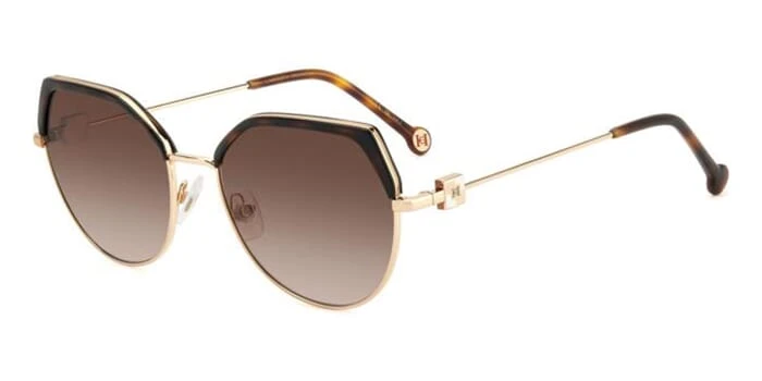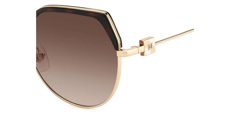 This square Carolina Herrera sunglass comes in a brown havana with rose gold frame with brown gradient lenses.