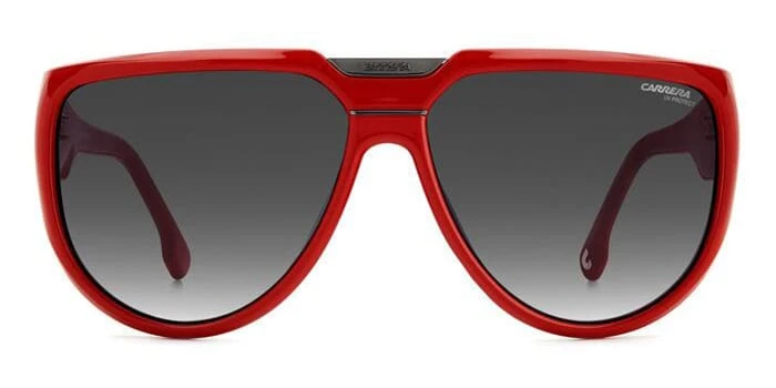 This aviator Carrera sunglass comes in a red frame with grey gradient lenses.