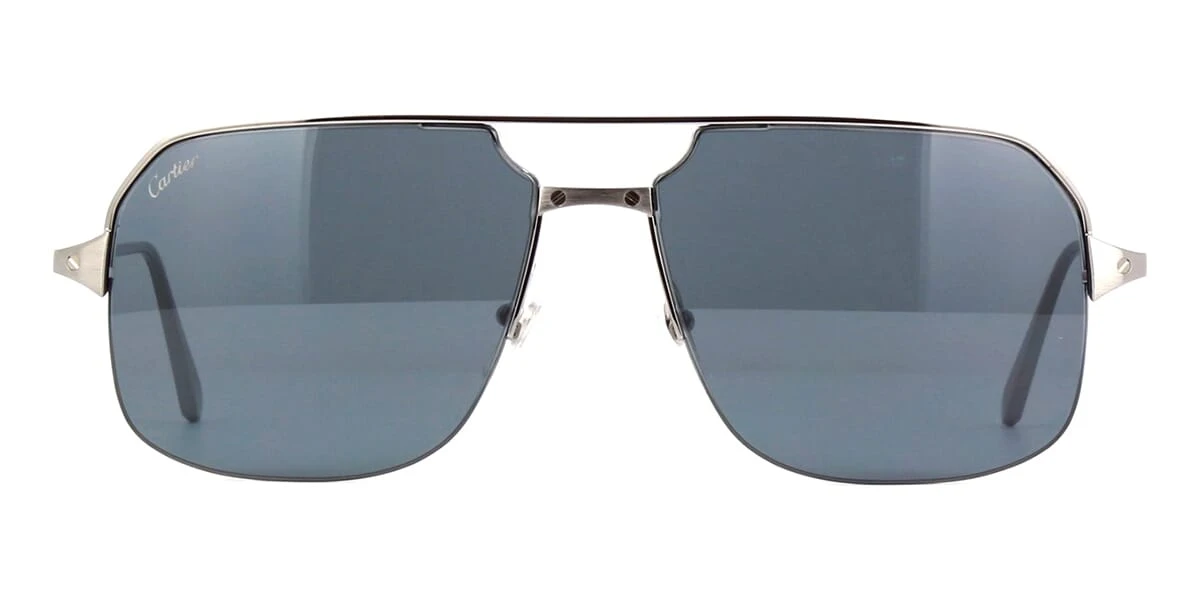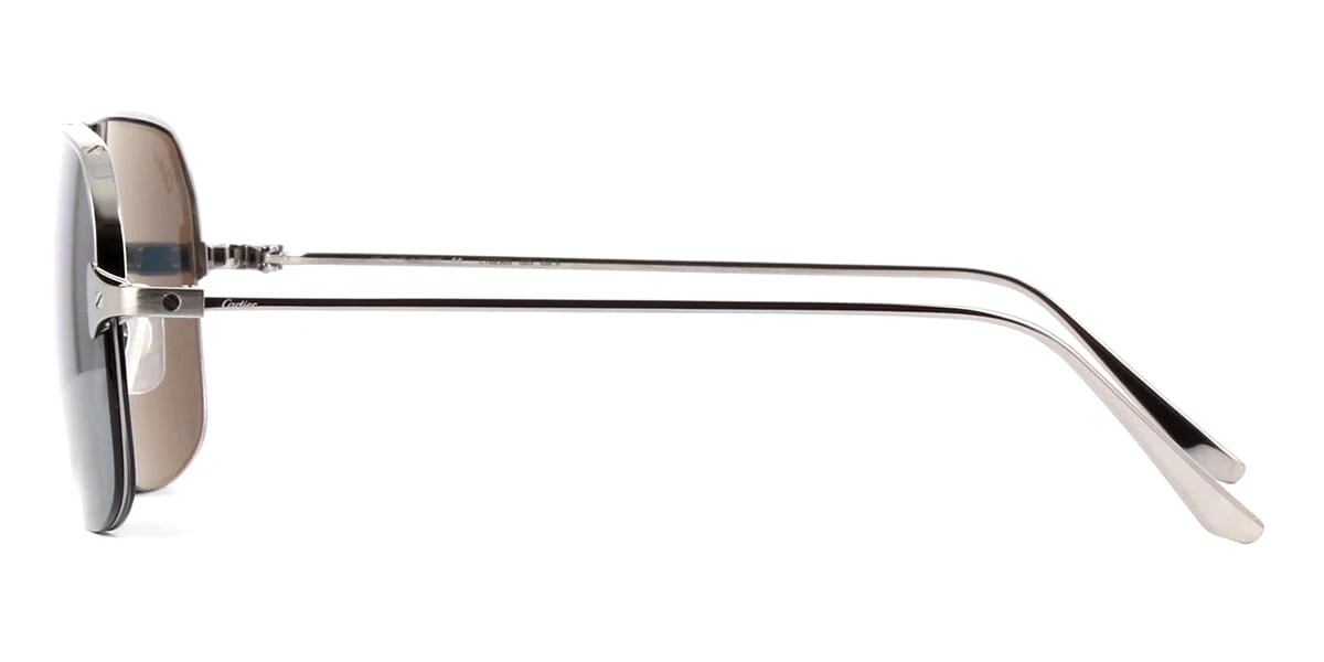 This square Cartier sunglass comes in a ruthenium frame with grey with light mirror lenses.
