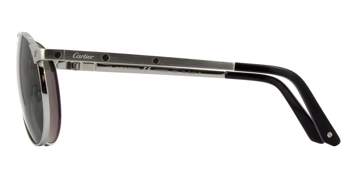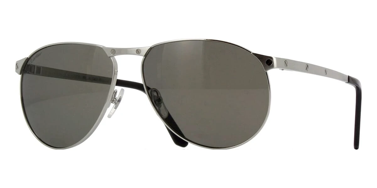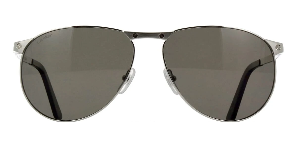 This aviator Cartier sunglass comes in a brushed silver frame with grey polarised lenses.