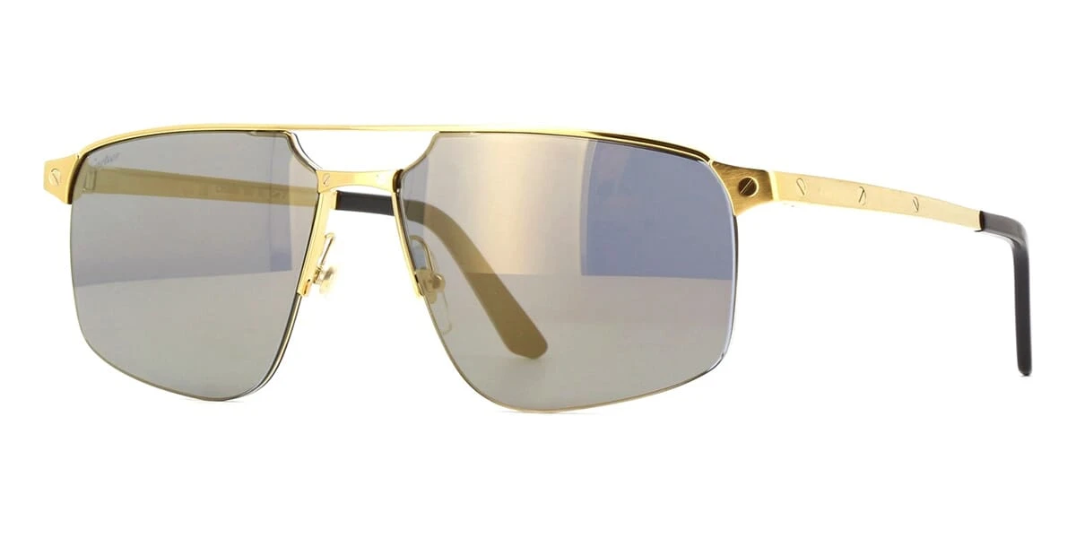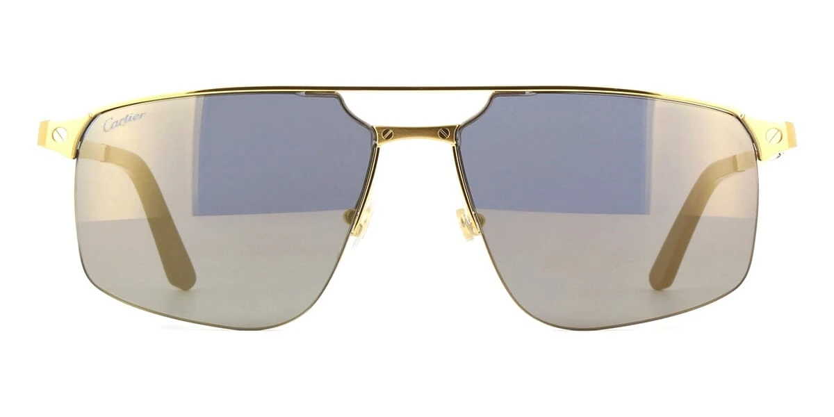 This aviator Cartier sunglass comes in a shiny gold frame with grey with bronze mirror lenses.