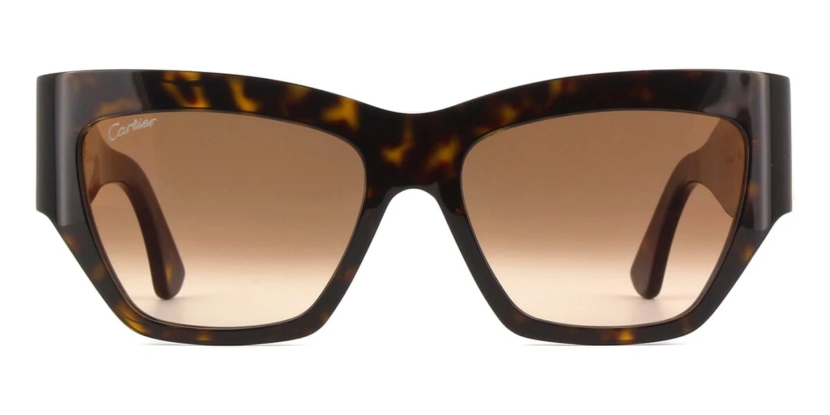 This square Cartier sunglass comes in a shiny dark havana frame with brown gradient with light mirror lenses.
