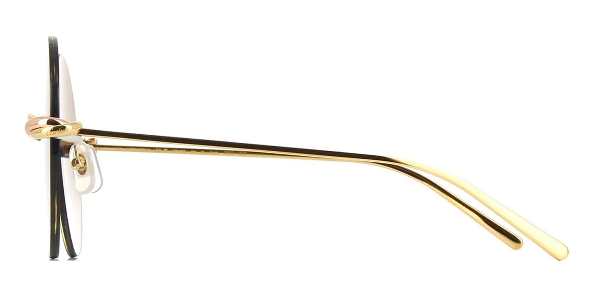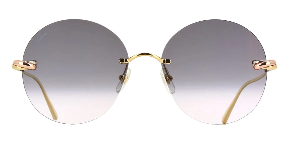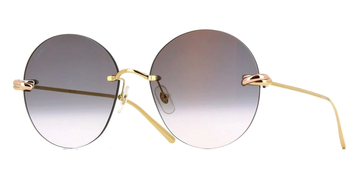 This round Cartier sunglass comes in a shiny gold frame with grey gradient lenses.