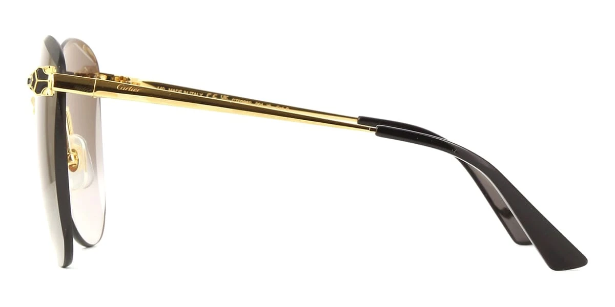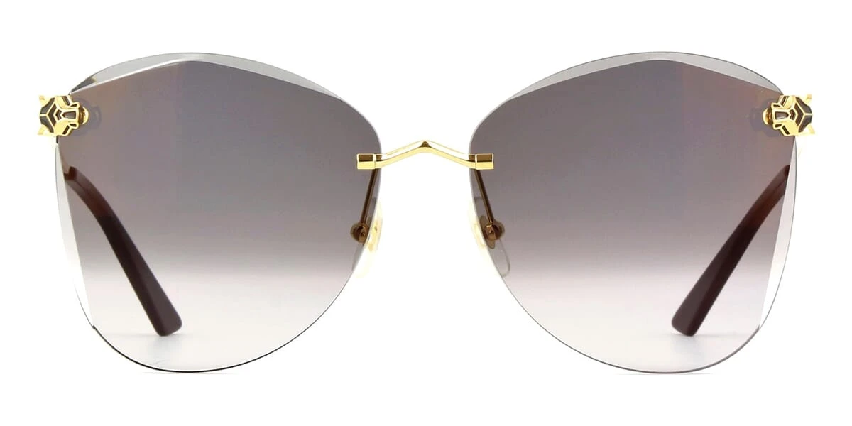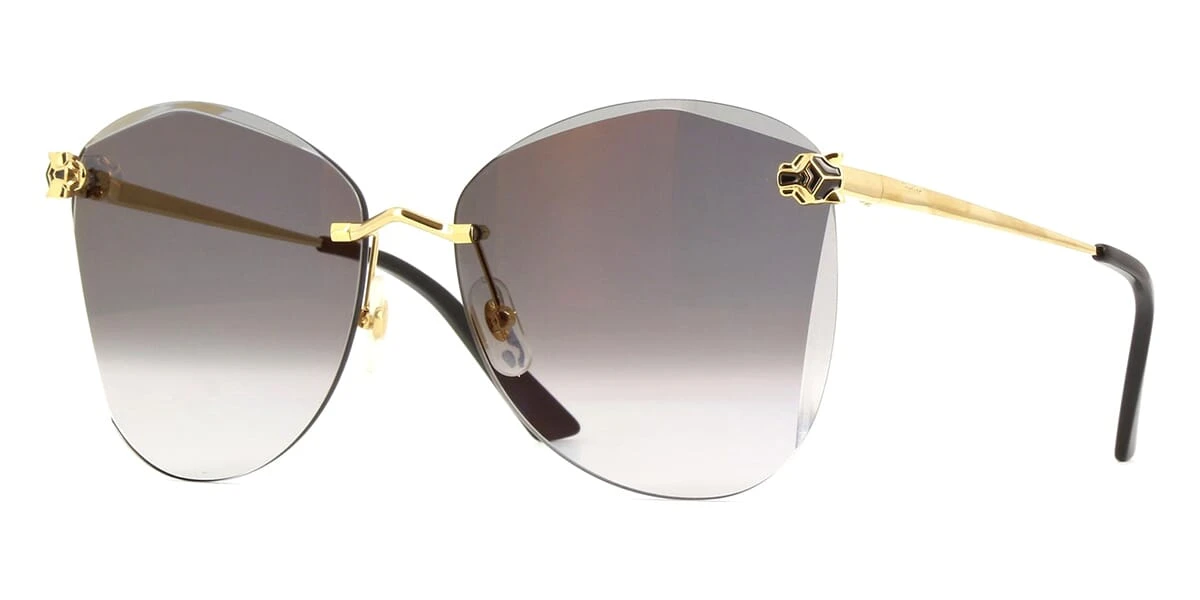 This butterfly Cartier sunglass comes in a shiny gold frame with grey gradient lenses.