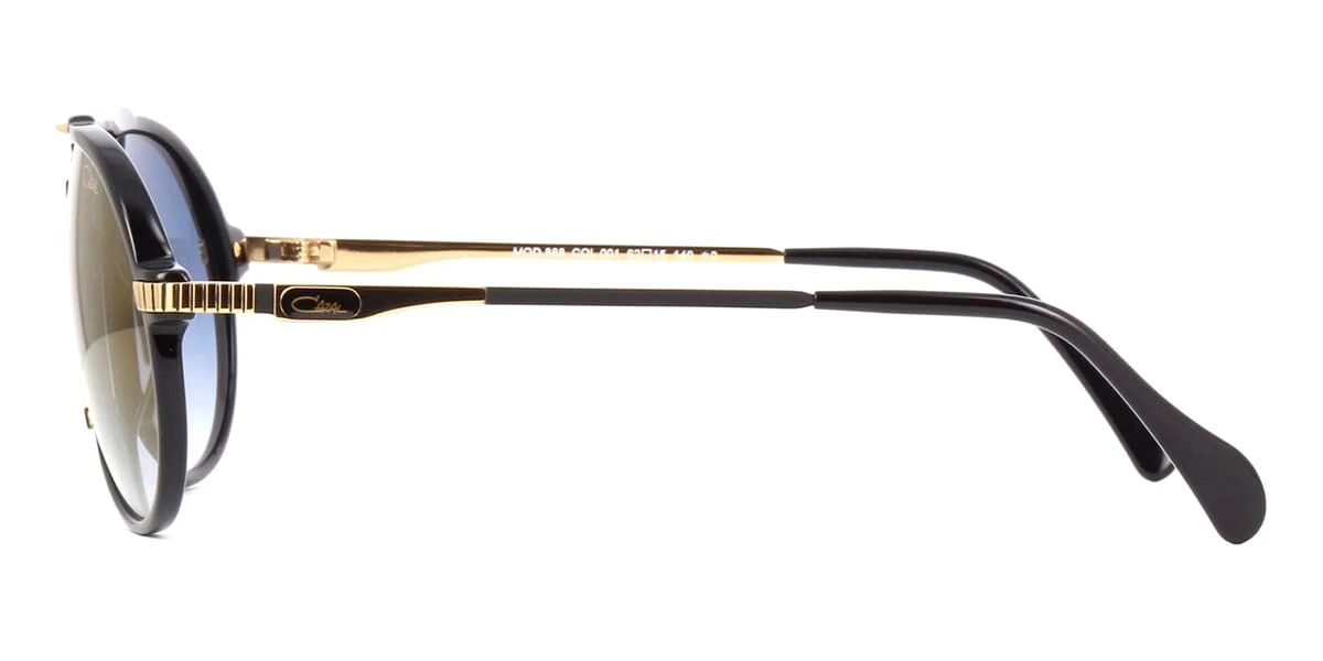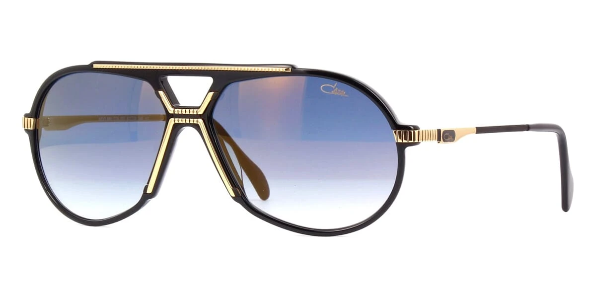 This aviator Cazal sunglass comes in a shiny black with gold frame with grey gradient lenses.