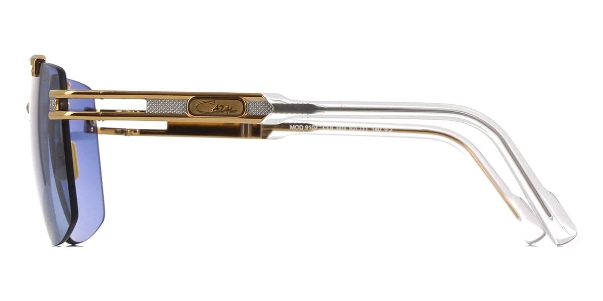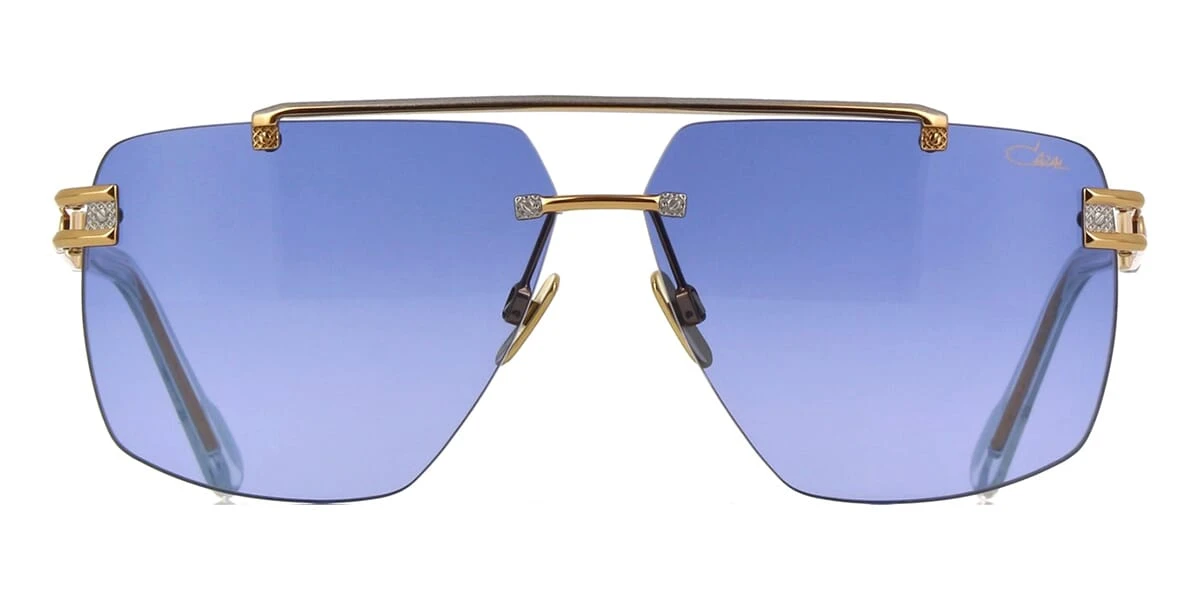 This aviator Cazal sunglass comes in a silver and gold plated frame with blue gradient with light mirror lenses.