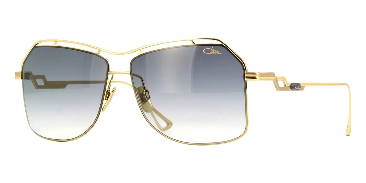 This aviator Cazal sunglass comes in a shiny gold frame with grey gradient lenses.