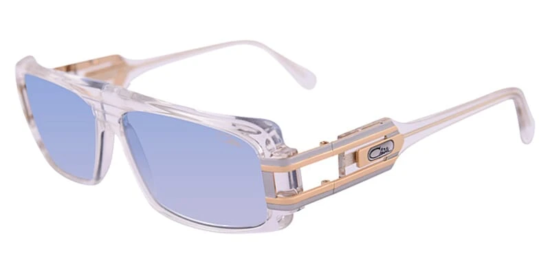 This rectangular Cazal sunglass comes in a crystal bicolor frame with blue gradient lenses.