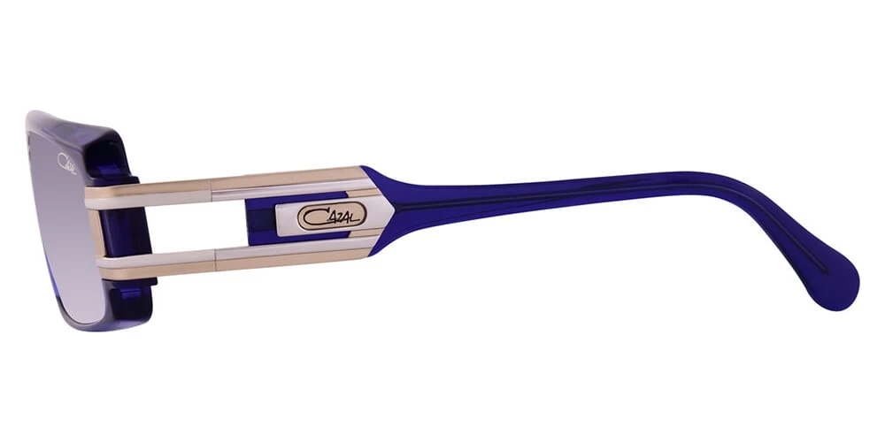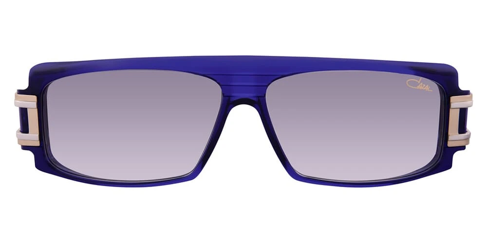 This rectangular Cazal sunglass comes in a blue frame with grey gradient lenses.