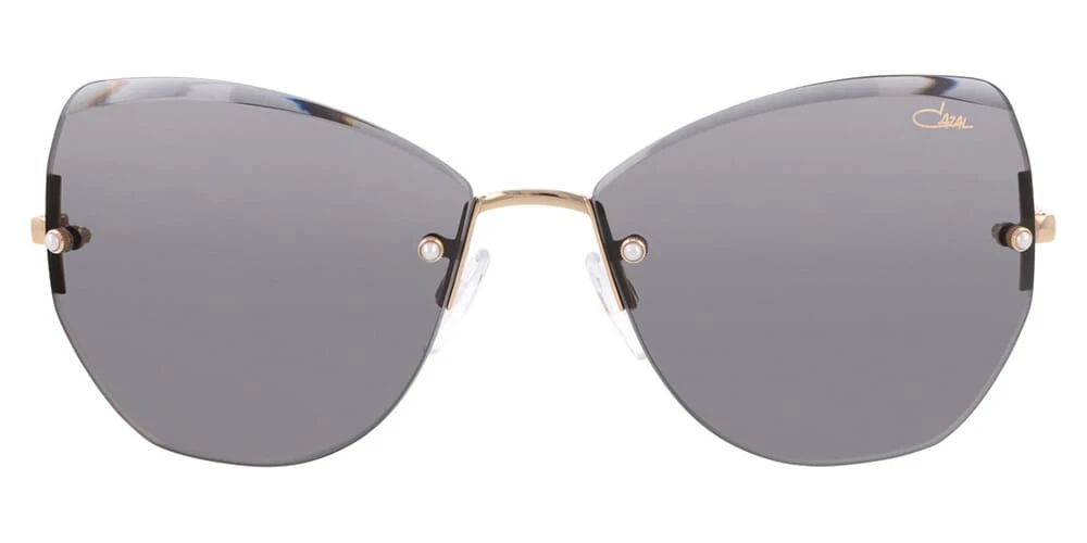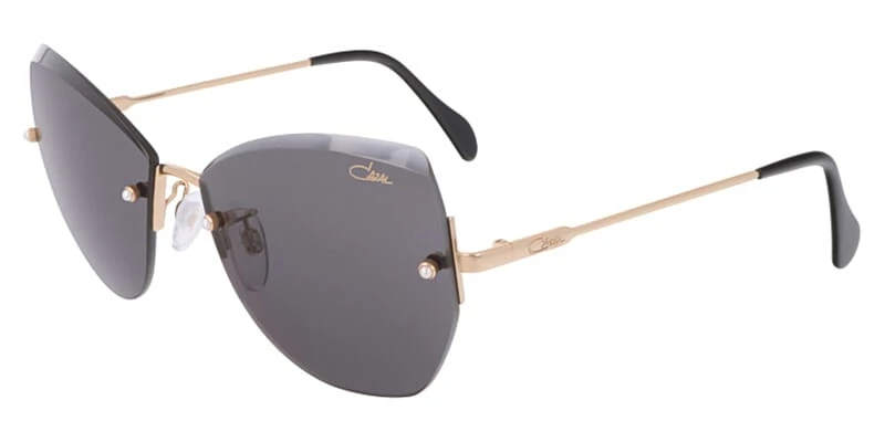 This square Cazal sunglass comes in a gold frame with grey lenses.