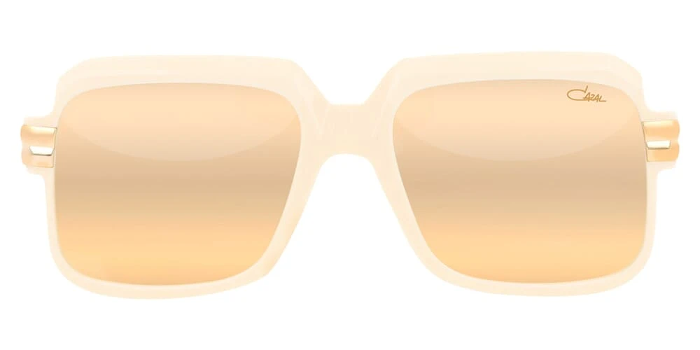 This square Cazal sunglass comes in a cream frame with gold mirror lenses.