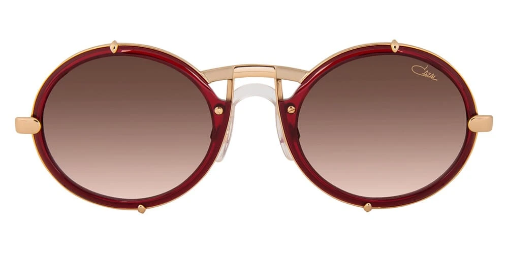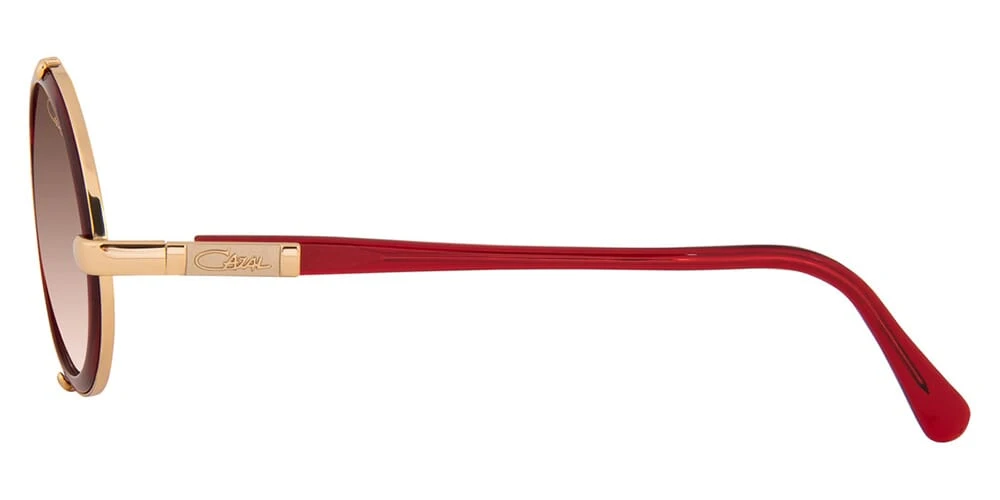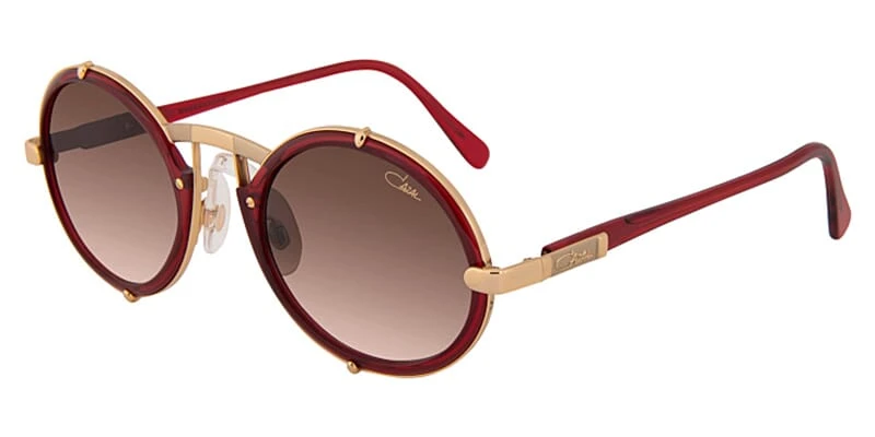 This round Cazal Legends sunglass comes in a red gold frame with brown gradient lenses.