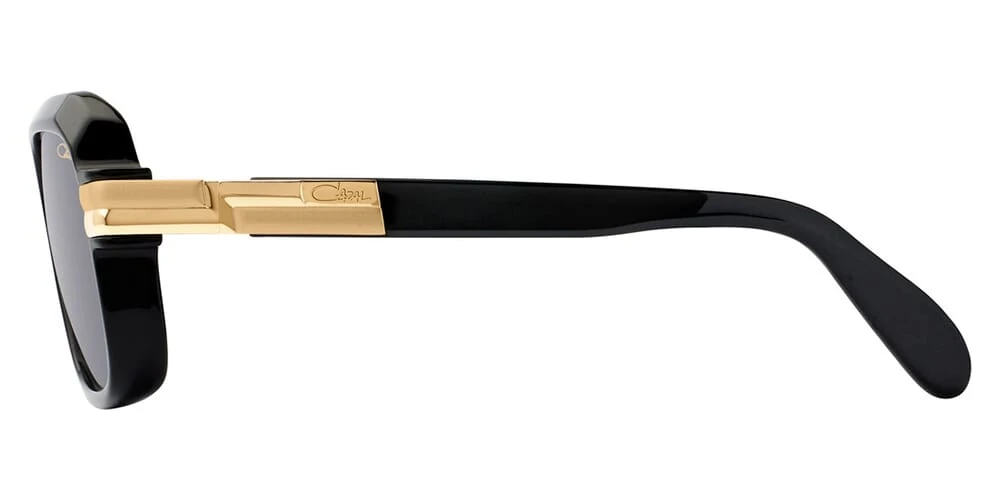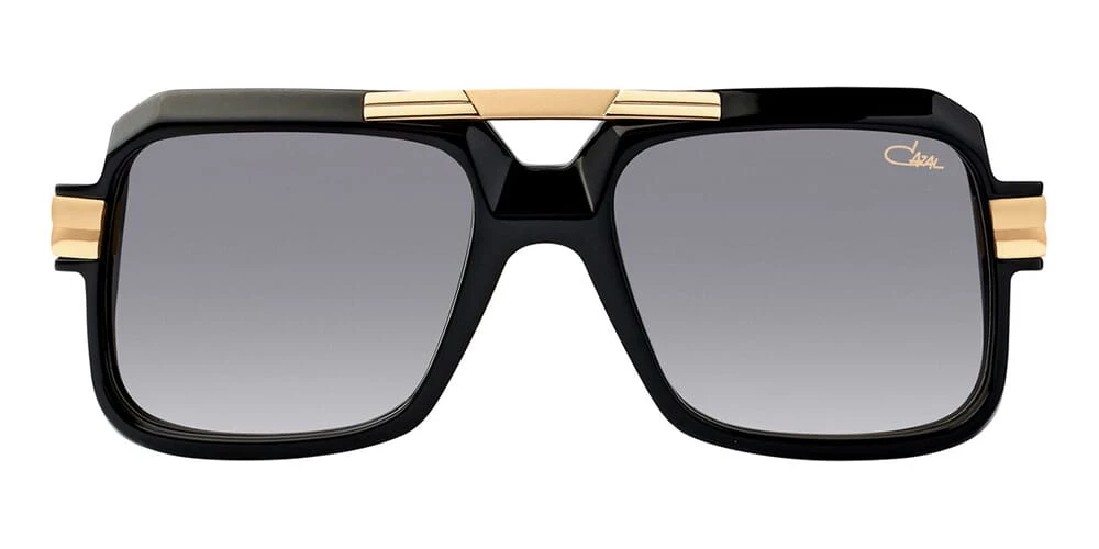 This square Cazal Legends sunglass comes in a black frame with grey gradient lenses.