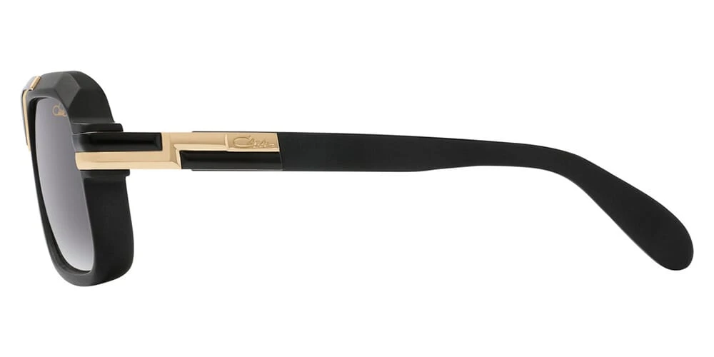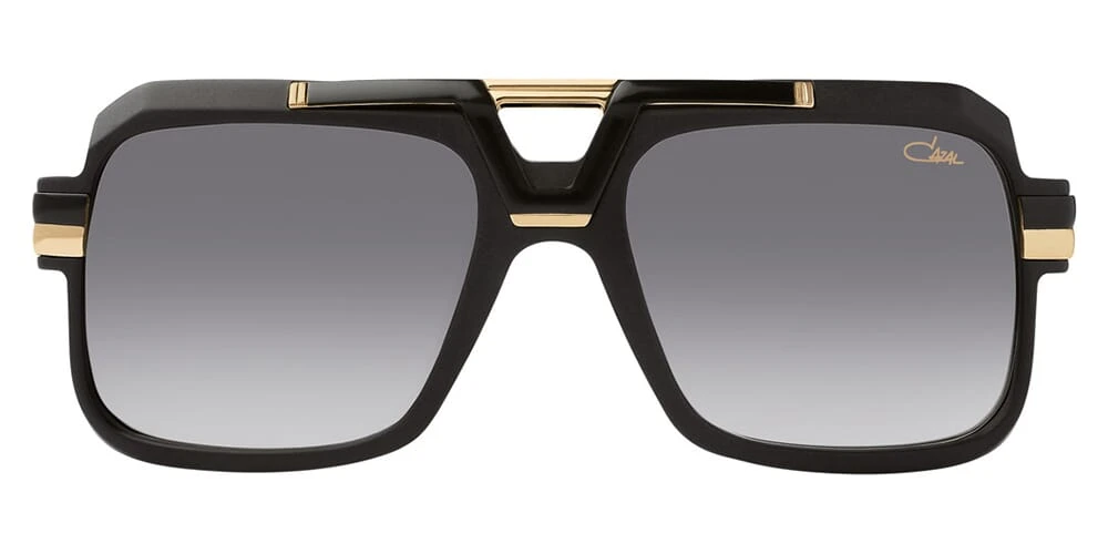This square Cazal Legends sunglass comes in a matt black frame with grey gradient lenses.