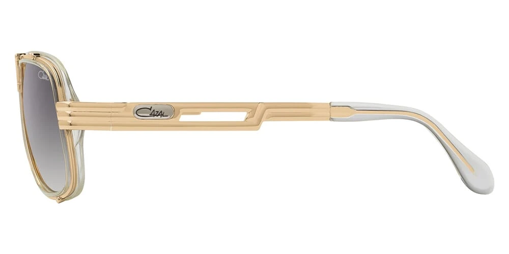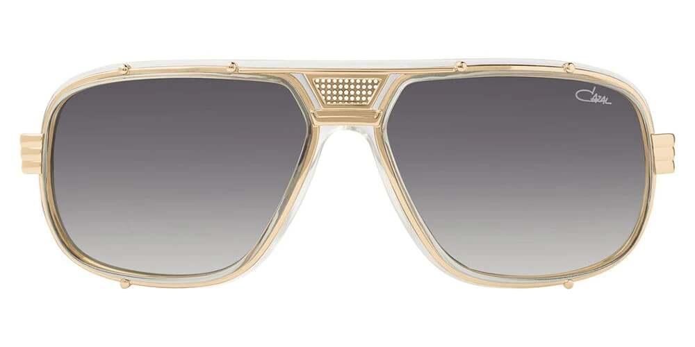 This square Cazal sunglass comes in a crystal gold frame with grey gradient lenses.
