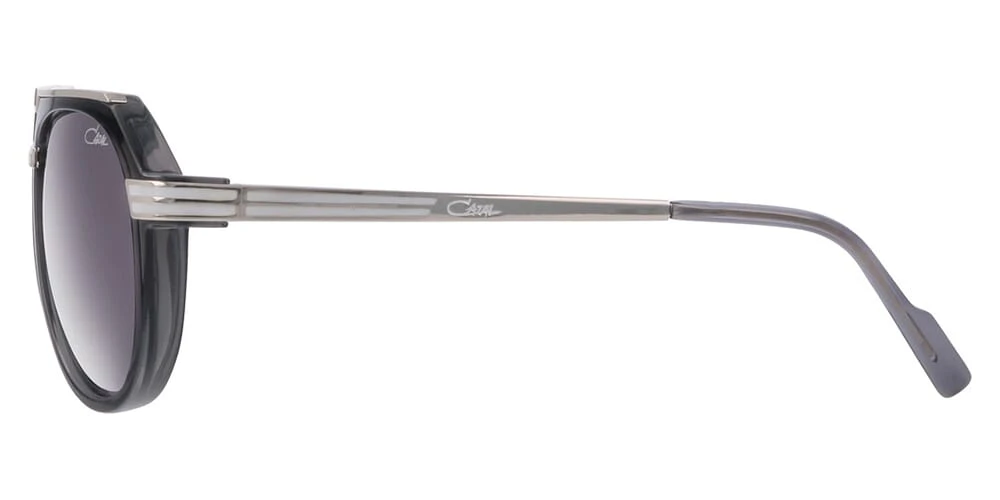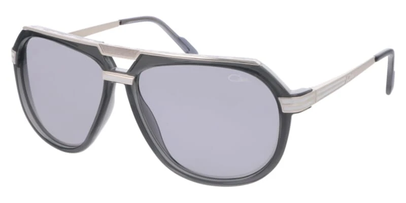 This square Cazal sunglass comes in a grey silver frame with grey lenses.