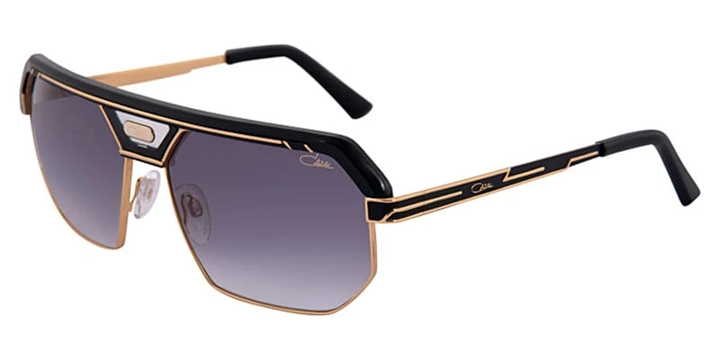 This square Cazal sunglass comes in a black gold frame with grey gradient ar coated lenses.