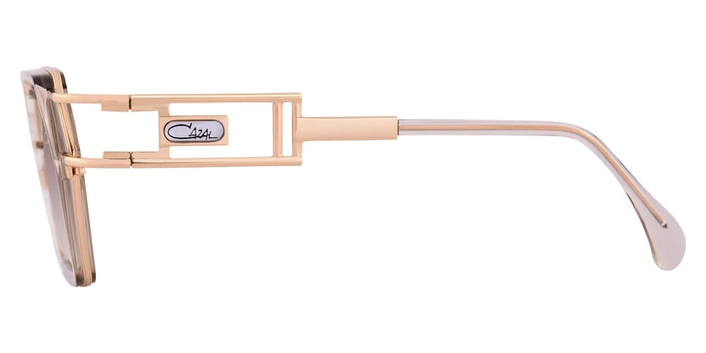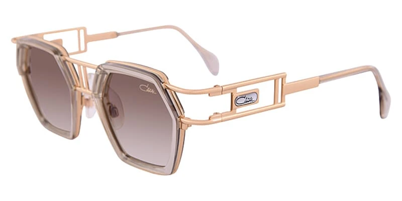 This square Cazal sunglass comes in a champagne gold frame with brown gradient lenses.