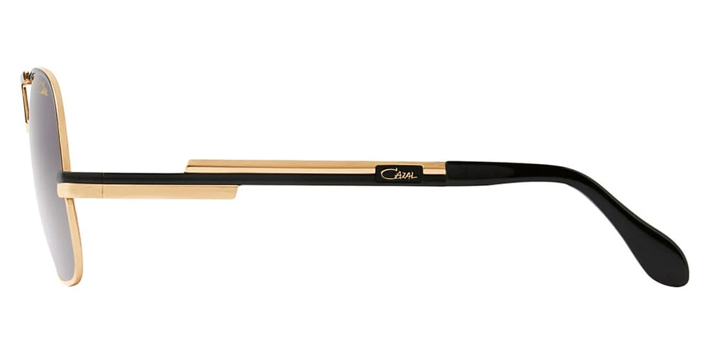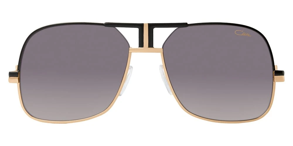 This square Cazal sunglass comes in a black and gold frame with grey gradient lenses.