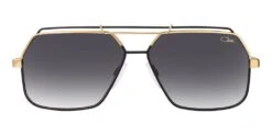 This square Cazal sunglass comes in a gold and black frame with grey gradient lenses.