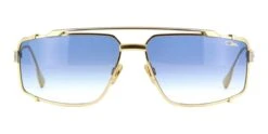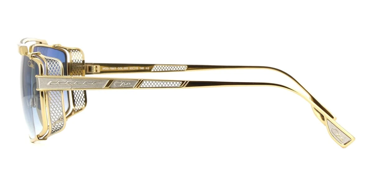 This aviator Cazal sunglass comes in a shiny gold with silver frame with blue gradient with light mirror lenses.